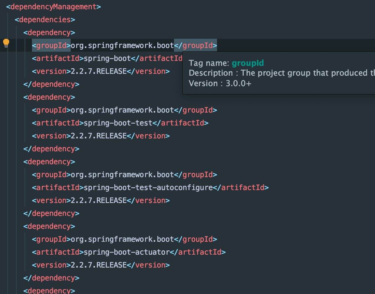 다음과 같이 여러 의존성들과 버전이 명시되어 있는 걸을 볼 수 있습니다.