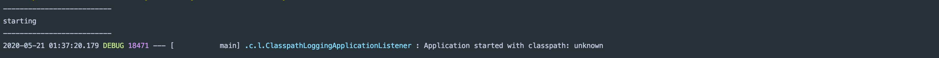 아래는 ApplicationStartingEvent 시점에 실행되는 이벤트입니다. ApplicationStartingEvent 시점은 애플리케이션이 시작되는 시점으로 context가 만들어지기 전입니다. 따라서 위 main 메소드에 직접 이벤트를 등록하여 사용합니다.
