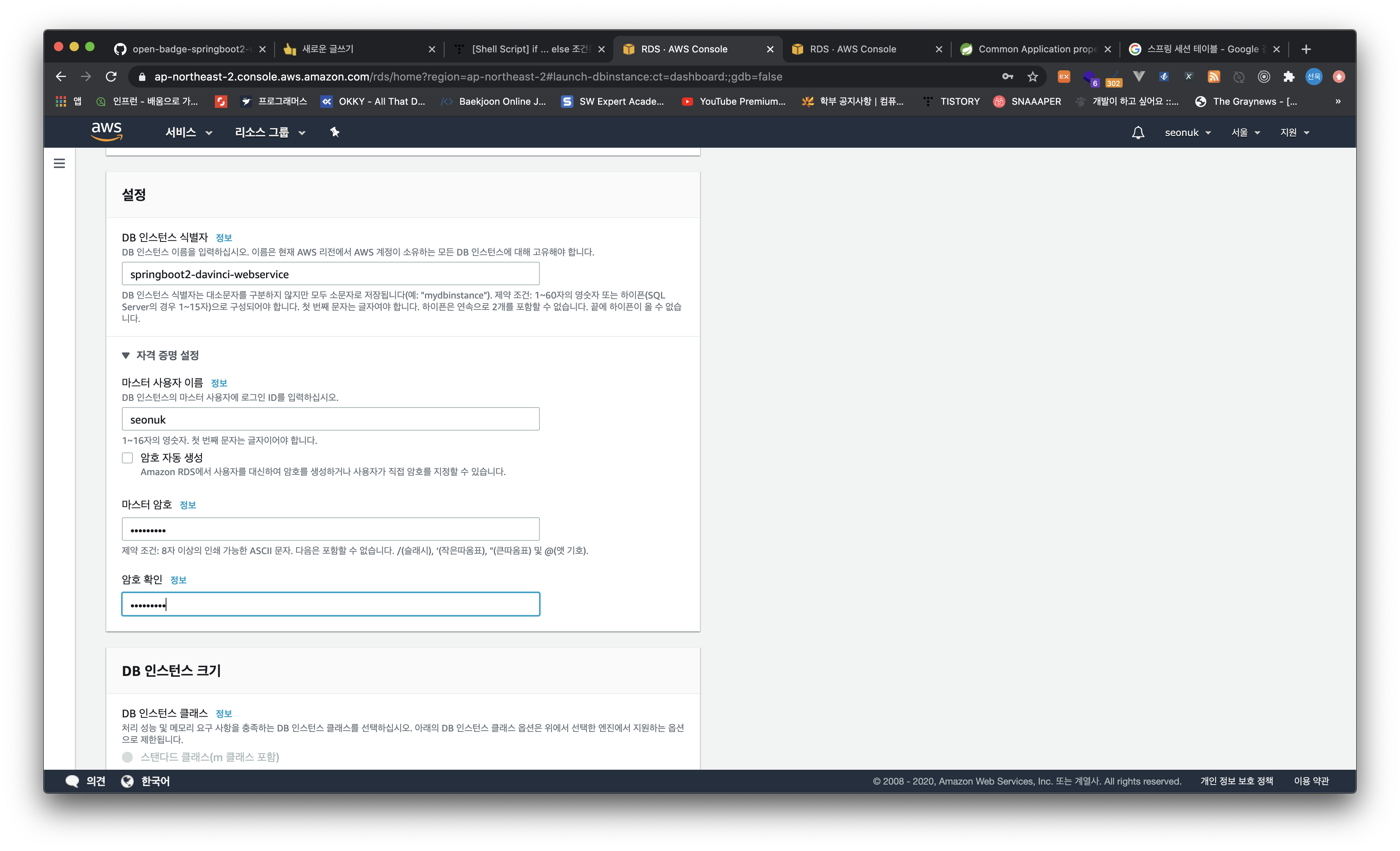 이 때 파라미터 그룹 패밀리는 위에서 생성한 디비 버전과 일치하게 해주세요.