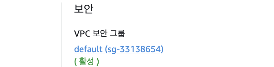 파라미터 설정을 마쳤으면 다음은 보안그룹 설정입니다. 데이터베이스로 돌아가 아래 화면 보안그룹을 클릭해주세요.